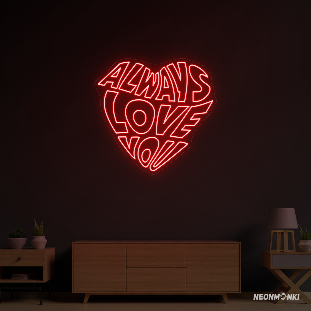 Sag’s mit Licht: Das handgefertigte Neonschild "always love you" in Herzform und leuchtendem Rot ist mehr als nur Dekoration – es ist ein klares Bekenntnis. Als emotionale Neon Wanddeko bringt dieser LED Schriftzug Wärme und Romantik in jeden Raum – perfekt für Schlafzimmer, Hochzeiten, Cafés oder einfach als tägliche Erinnerung an das, was wirklich zählt.