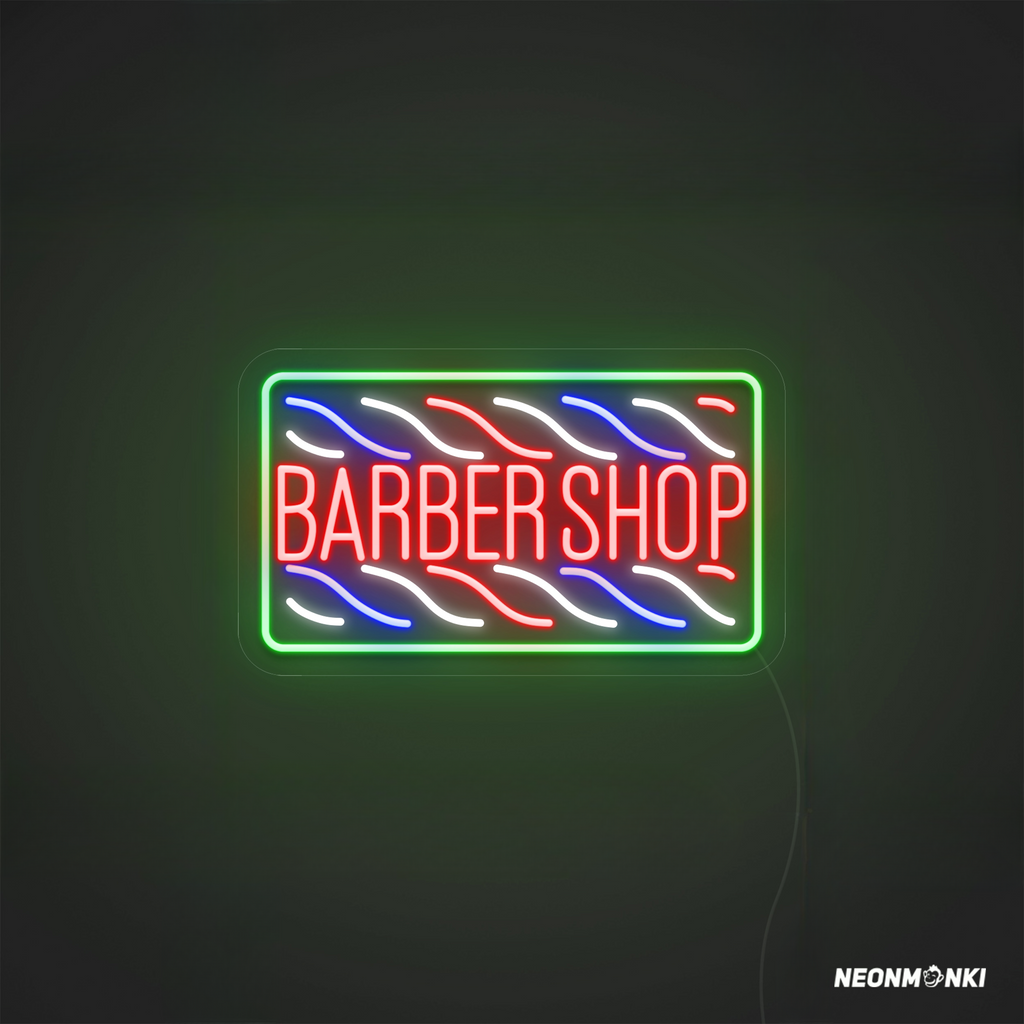 Setze ein leuchtendes Statement mit unserem handgefertigten Neon LED-Leuchtschild „Barbershop“ in den markanten Farben Grün, Blau, Kaltweiß und Rot. Perfekt für Friseursalons, Barber Shops oder als auffällige Neon Wanddeko, um deinen Kunden schon von weitem zu zeigen, dass hier echte Handwerkskunst geboten wird. Dieses Neonschild vereint klassisches Barber-Design mit moderner Beleuchtungstechnologie.