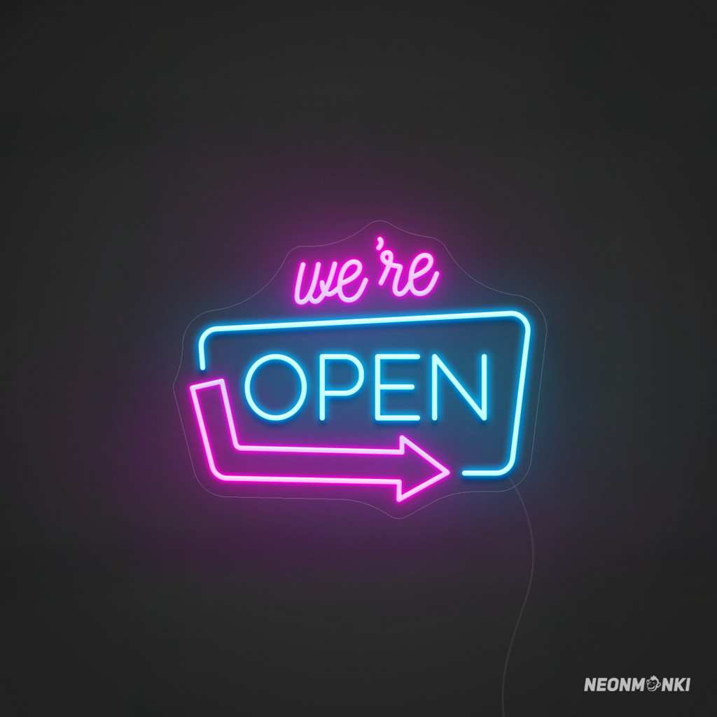 - Handgefertigtes LED Neonschild mit „We´re OPEN!“-Schriftzug