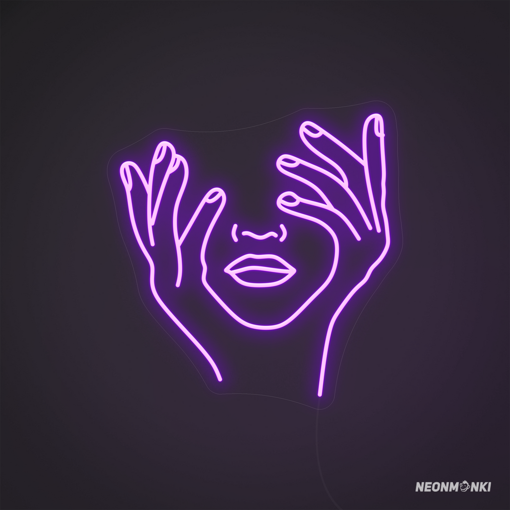 Ein Design, das Emotion und Ästhetik verbindet: Dieses handgefertigte Neon LED Schild zeigt eine stilisierte Frauenfigur, die sich mit kunstvoll manikürten Händen sanft die Augen bedeckt – ein Symbol für Schönheit, Selbstfürsorge und feminine Ausstrahlung. In leuchtendem Pink wird dieses Neonlicht zum Blickfang in deinem Nagel- oder Kosmetikstudio und verleiht jedem Raum eine edle, moderne Note.