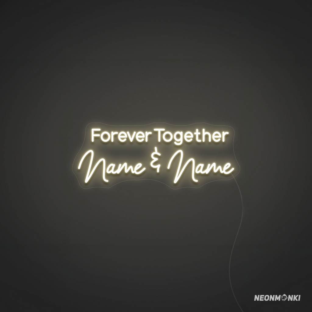 Setze ein strahlendes Zeichen für eure Liebe mit dem handgefertigten Neon LED Neonschild "Forever Together" mit euren Namen. Perfekt als romantische Hochzeitsdeko, als stilvolle Neon Wanddeko für das gemeinsame Zuhause oder als einzigartiges Geschenk zur Verlobung – dieser LED Schriftzug ist ein echtes Highlight.