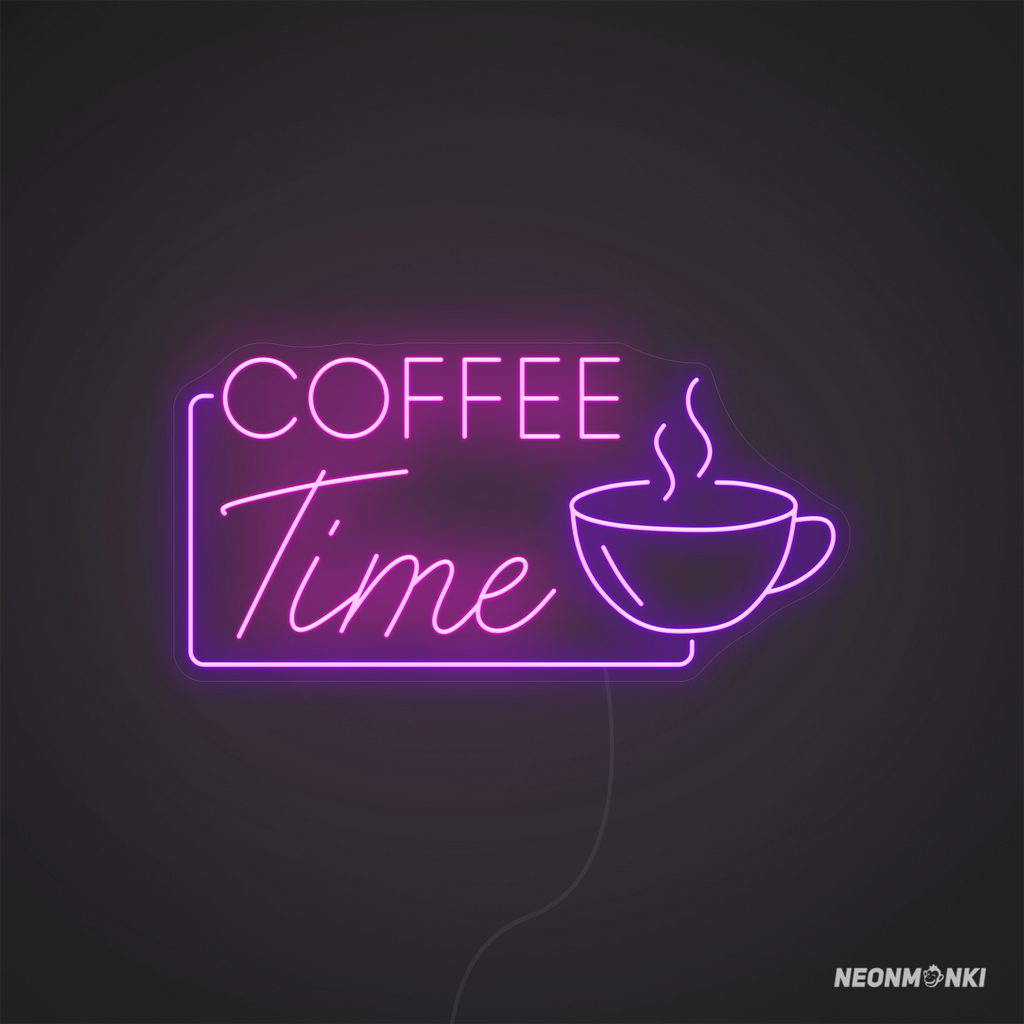 Mach jeden Moment zur Kaffeepause – mit dem handgefertigten Neon LED Schild „coffee time“ inklusive stilisierter Kaffeetasse in kräftigem Lila und Pink. Dieses farbenfrohe Neonschild sorgt für gute Stimmung und zieht als moderne Neon Wanddeko alle Blicke auf sich – ob im Café, in der Küche oder im Büro.