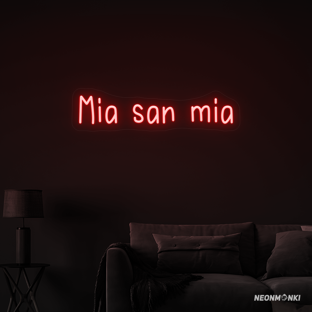 Zeig Haltung mit Stil: Der rote Neon LED Schriftzug „mia san mia“ bringt bayerischen Stolz und Selbstbewusstsein als leuchtende Botschaft direkt an deine Wand. Ob im Wohnzimmer, im Büro oder als Statement im Schaufenster – dieses handgefertigte Neonschild zieht garantiert alle Blicke auf sich.