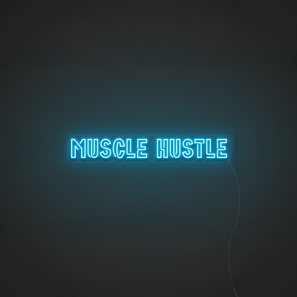Zeig, dass du für deine Ziele kämpfst! Das handgefertigte Neon LED Neonschild „Muscle Hustle“ in Hellblau setzt ein starkes Statement in deinem Gym. Ob im Fitnessstudio, Home-Gym oder als stylische Neon Wanddeko – dieses Leuchtschild bringt die richtige Energie in deinen Trainingsraum.