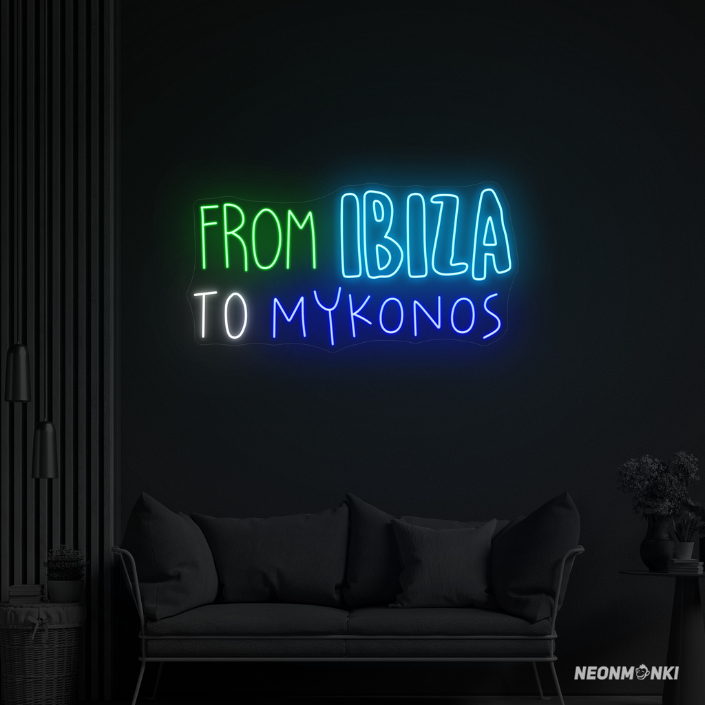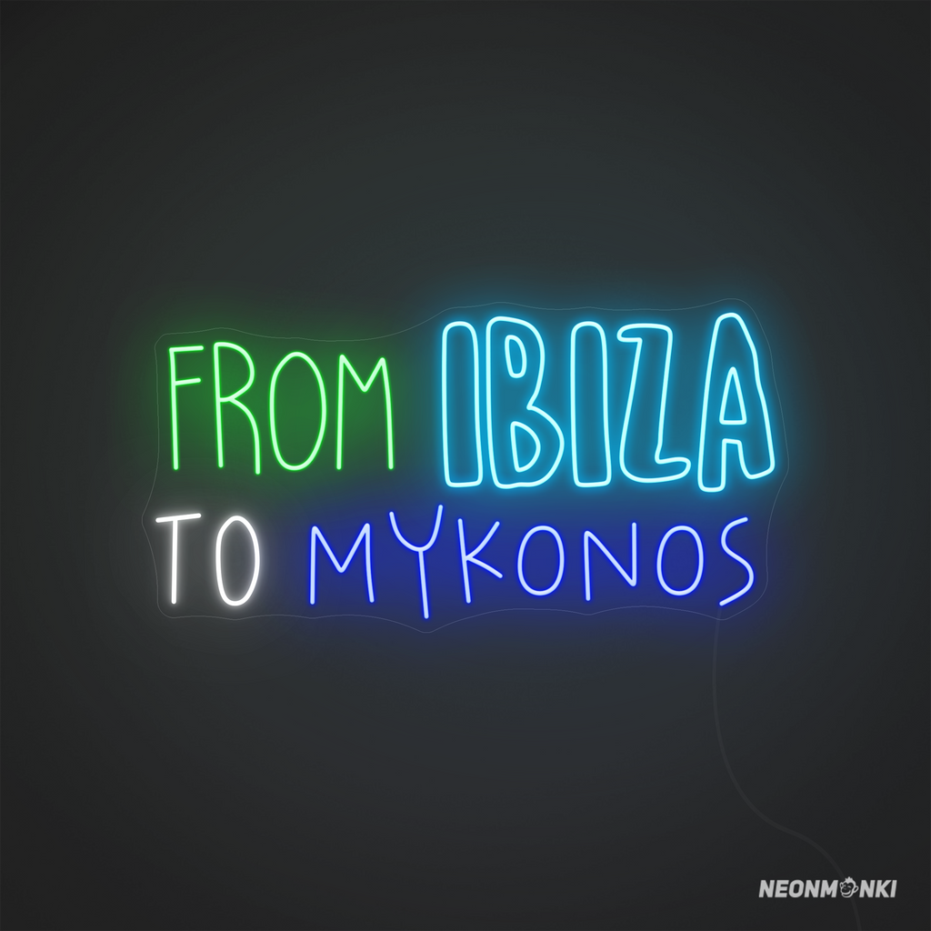 Hol dir das Neon LED „from ibiza to mykonos“ und setze ein leuchtendes Statement mit Urlaubsflair!