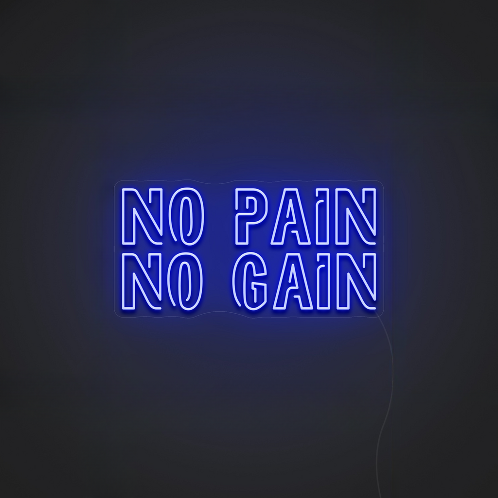 Setze ein starkes Zeichen in deinem Gym mit dem handgefertigten Neon LED Neonschild „No Pain No Gain“ in leuchtendem Blau. Egal, ob in deinem Home-Gym, Fitnessstudio oder als eindrucksvolle Neon Wanddeko, dieses Leuchtschild erinnert dich täglich daran, über deine Grenzen hinauszugehen.