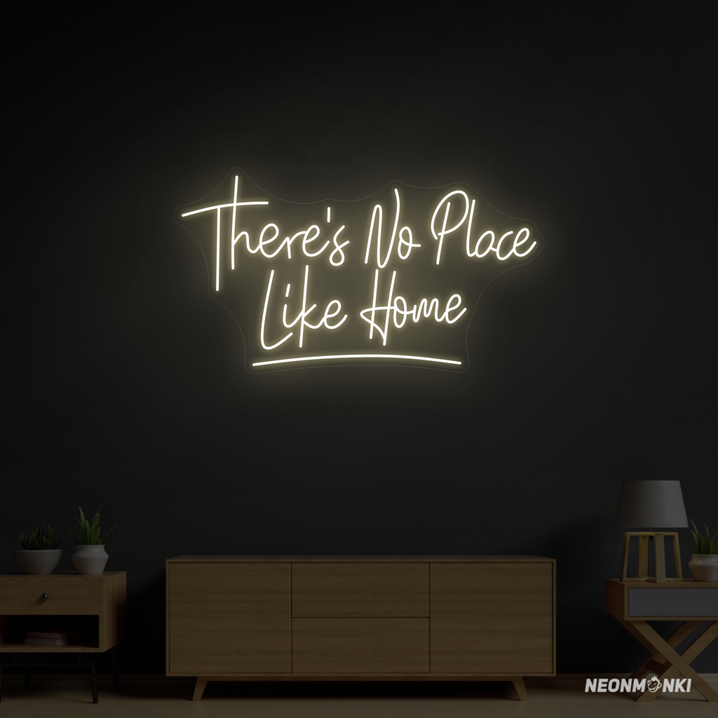 Zuhause ist mehr als ein Ort – es ist ein Gefühl. Das handgefertigte Neon LED Schild mit dem Schriftzug „there is no place like home“ bringt genau dieses Gefühl in sanftem Warmweiß an deine Wand. Ob im Wohnzimmer, Eingangsbereich oder Schlafzimmer – dieses stilvolle Neonschild sorgt für gemütliches Ambiente und ist ein echter Blickfang im Interior Design.